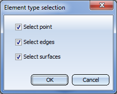 With the available options you specify which elements (points, edges, or surfaces) you want to allow for base point determination. The dialogue window can be activated each time HiCAD requests the identification of an element to be dimensioned.