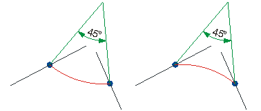 The arc was generated by identifying two points and entering the angle. There are 2 solutions.