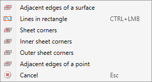 - In your drawing, select the edges or surfaces you want to fillet. With a right-click you can activate a context menu with further selection options of the elements to be filleted. For example, you can also select corners in sheet metal parts.
