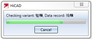 If you click the Check insertion button, each data record of the VAA file will be loaded in a temporary drawing, ANLINSPECT_TEMP, and checked for its geometrical properties. The progress of the checking process is shown in a corresponding dialogue window: