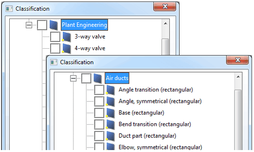 Below the Plant Engineering class you will find the classes of the parts used in Plant Engineering. Below the Air ducts class you will find the classes of the parts used for Air ducts.