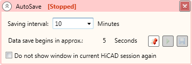 Shortly before performing the AutoSave, HiCAD will display the AutoSave window: