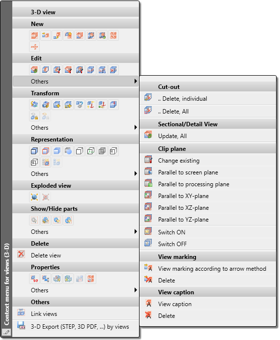 Now let us assume that you want to hide the Clip planesection in the Process > Others menu, and display the other functions of the menu as icons only: