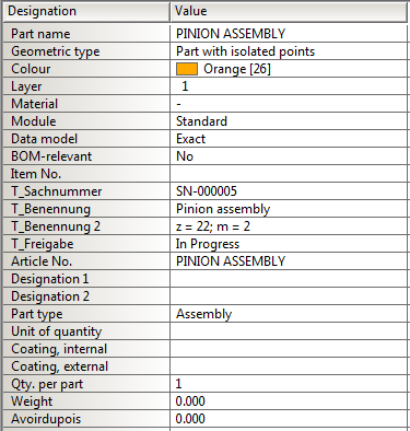 The table below lists the attributes (default) shown for 2-D and 3-D parts and 3-D assemblies. For other parts, e.g. Steel Engineering beams or Sheet Metal parts, other attributes will be shown.