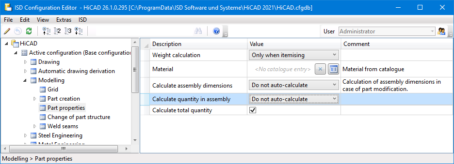 Please note that the calculation of this value depends on the setting in the Configuration Editor, at Modelling > Part properties > Calculate quantity in assembly.