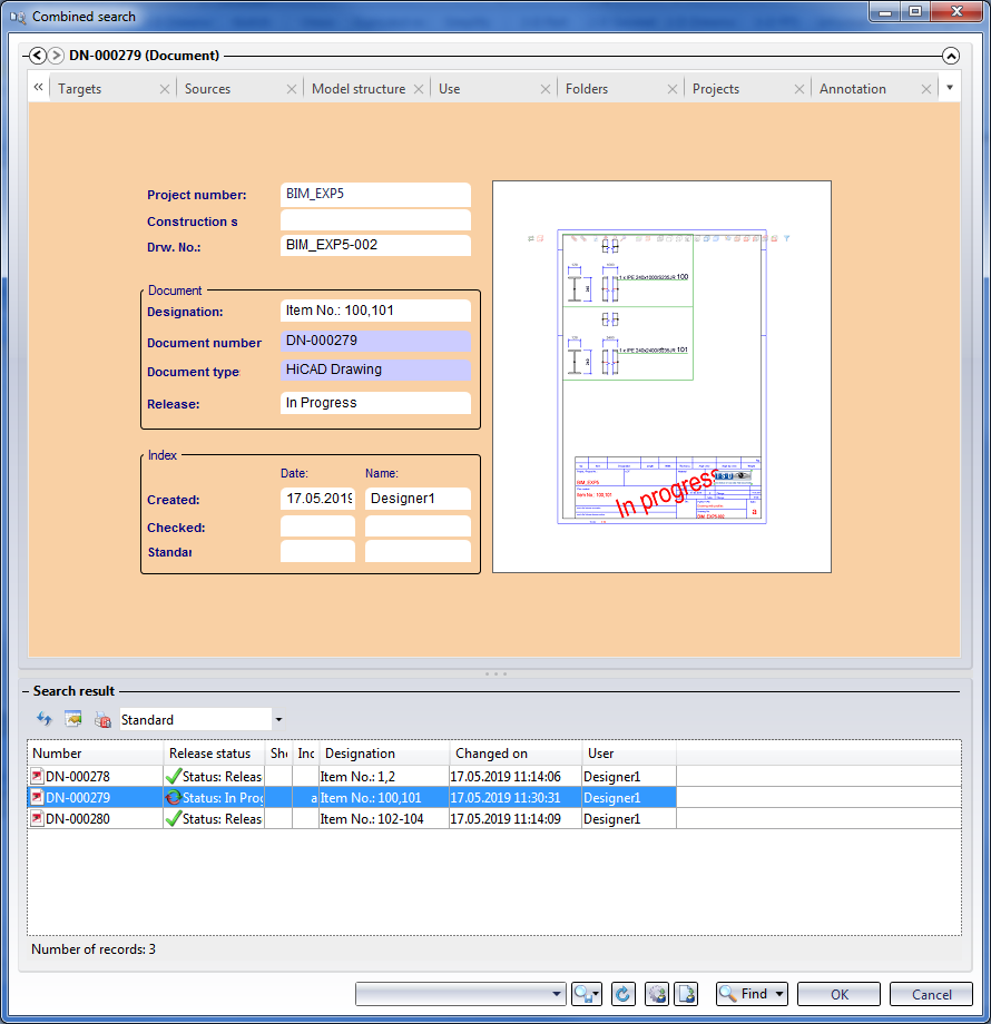 - HiCAD shows all parts and assemblies for which no drawings exist yet.