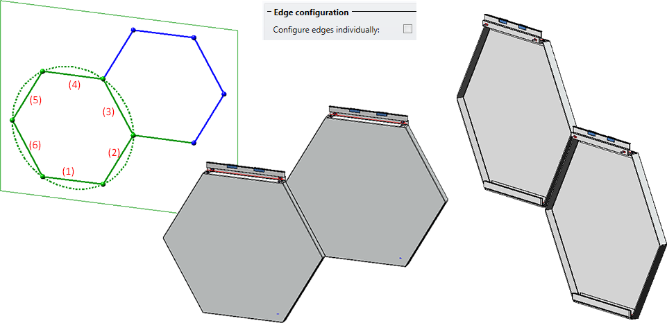 The installation surface consists of two hexagons. The installing is done without configuring the edges here.
