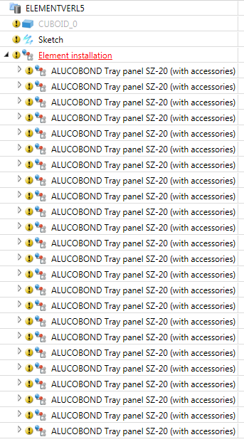 The installation elements that have been inserted in the process will be combined into one assembly called Element installation. In our example, this looks as follows: