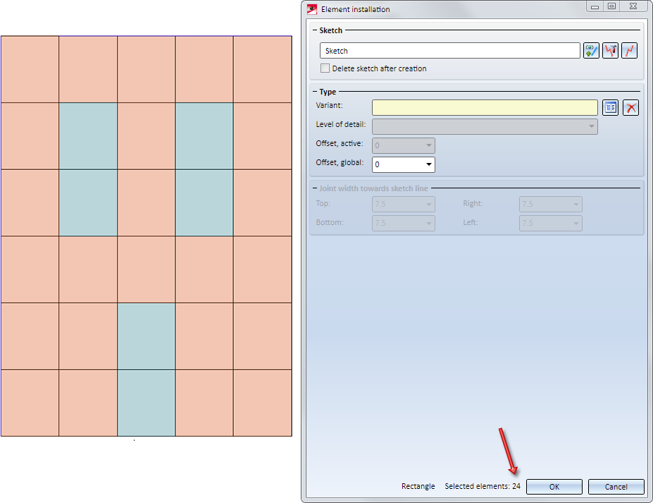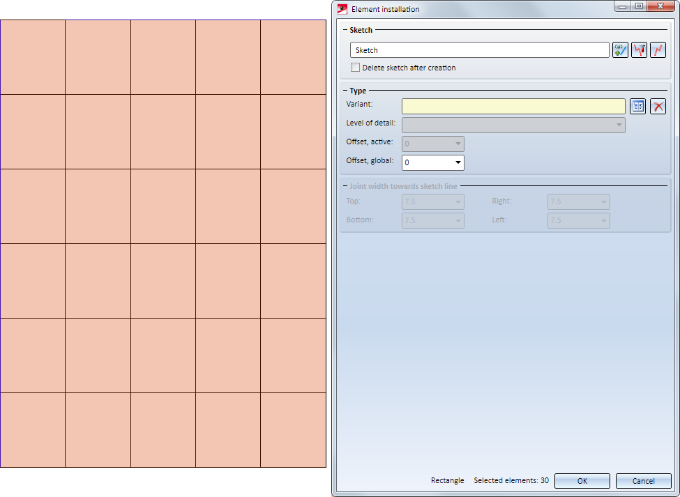 Please note that element installation works only for sketch areas that have no gaps, are not nested and have no double lines. Each of these sketch areas stands for one installed element.