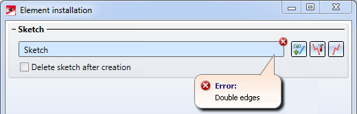 If the selected sketch contains double edges, this will be indicated by the symbol in the dialogue window: