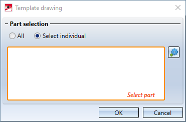 After you have created drawings using this function, you can use the Open template files function to conveniently open the drawing belonging to the currently selected part.