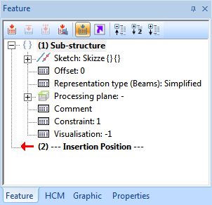 Adjustments made manually to a sub-structure, such as drill holes, are retained even after the sub-structure has been recalculated. In case you want to discard your changes, the Create new function is available in the context menu of the sub-structure entry in the feature log - analogous to the element installation - which creates the sub-structure anew. Please refer to the notes in the topic Edit Element Installation.