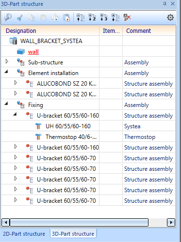 The wall brackets are installed as a structure assembly and combined in an assembly called Fixing.