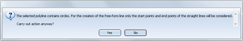 When you confirm this message with Yes, only the start points and end points of the straight line will be considered for the creation of the spline, as shown in the image below, where an Akima spline (including the arcs) has been derived from the sketch on the left hand side.
