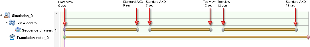 Now define the following sequence of views: The start view is the front view. After 6 seconds, the standard axonometry is to be shown for 1 second. Then, the top view is to be shown from the 12th second onwards for 1 second. Finally, the standard axonometry is to be shown again in the 19th second.