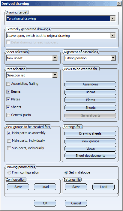 Use the Configuration Editor (ISDConfigEditor.exe in the HiCAD EXE directory) to further influence the drawing derivations via the Drawing Management module. The required settings can be found at PDM > Drawing Management.