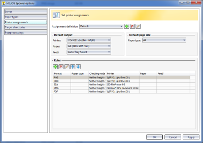 On the Printer assignments tab you can, for example, assign print jobs with particular paper types to particular printers.