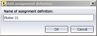 icon next to the Assignment definition input field. In the dialogue window below, enter a name for the assignment, e.g. "Plotter 01".