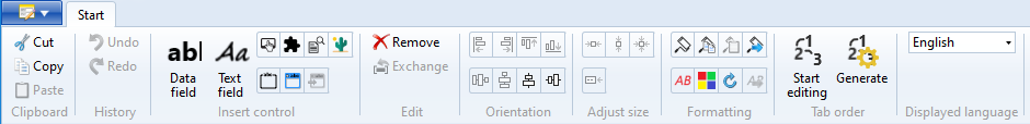 On the Start Ribbon of the Mask Editor you will find a number of editing functions. In many cases, these behave in the same way as the usual Windows functions::