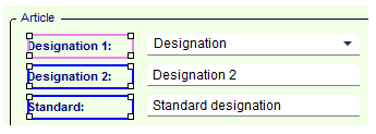 A multiple selection of fields can be set to the same dimensions. The determining element is usually the last clicked element, which is displayed with a pink border. The other selected field(s) (with blue border) will be adjusted in width (of the determining element), e.g. by clicking on