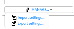 At the bottom of the window you will find the MANAGE button with a pull-down menu for importing or exporting the settings.