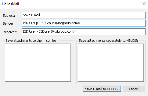 Es öffnet sich ein Dialog zum Speichern der E-mail(s) in der HELiOS-Datenbank: