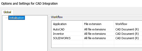 Here you can specify which document type is to be automatically assigned to which file extensions (.iam, .iDw, .ipt) in the Workflow configuration when a new document is created.