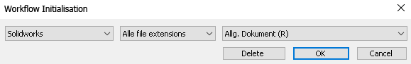 Choose All file extensions if the same Workflow is to be assigned to all SOLIDWORKS file types. However, you can also carry out the assignment to a particular file type via the pull-down menu.