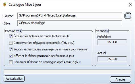 Retrouvez d'autres informations sur la mise à jour des catalogues dans les Remarques sur l’installation HiCAD.