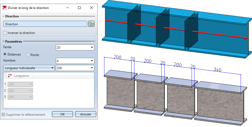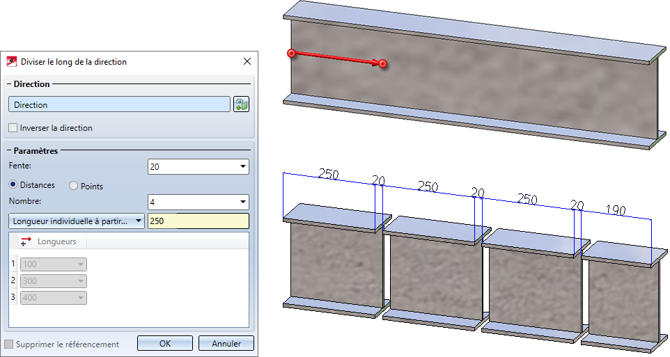 Charpente métallique > Prolonger > Diviser > Diviser le long de la direction