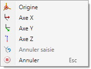 , vous pouvez à tout moment repasser à la sélection de l'axe ou de la direction. - Une fois l'axe ou la direction sélectionné, la commande Sélectionner axe ou Sélectionner direction sera remplacée, respectivement, par le texte Axe ou Direction, et la couleur du champ change.