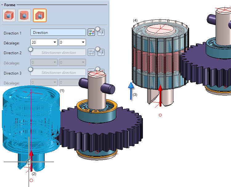 Les différentes options vous seront expliquées à l'aide de l'illustration suivante. On souhaite ici envelopper l'ensemble de gauche (Ensemble pignon).