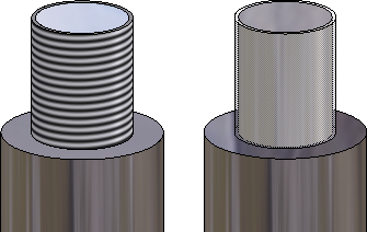 Filetage extérieur : à gauche avec texture de filetage, à droite transparent