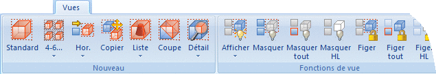 Les fonctions pour définir et modifier les vues et les projections se trouvent dans la barre multifonction à l'onglet Vues.