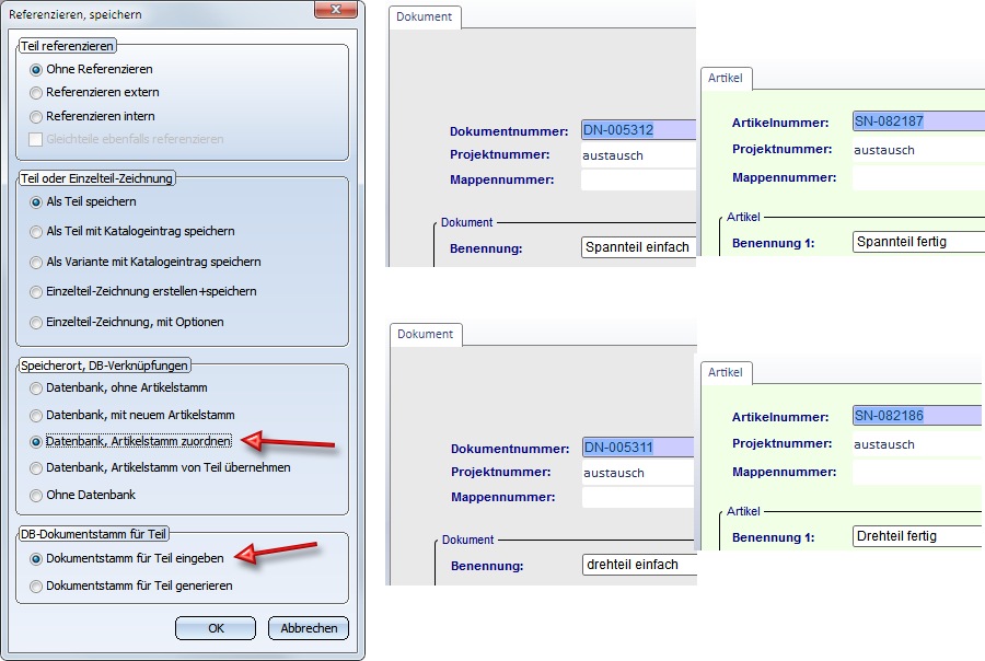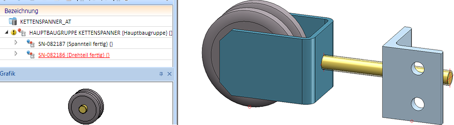 Dadurch wird automatisch eine Bauteil – Teilegeometrie-Verknüpfung zwischen dem Artikel und der neuen Geometrie erzeugt. Damit ist jetzt beispielsweise der Artikel Spannteil fertig mit zwei verschiedenen Geometriemodellen verknüpft.