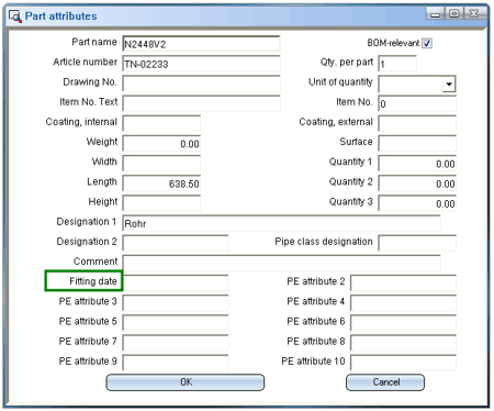 If you now activate a Plant Engineering part in HiCAD and select the Part attribute function, you can assign texts to the attributes shown above. You can access the function via the context menu for parts or via the 3-D Standard tab.
