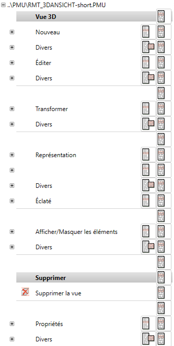 Vous voyez listées ici les entrées du menu contextuel dans une structure d'arbre.