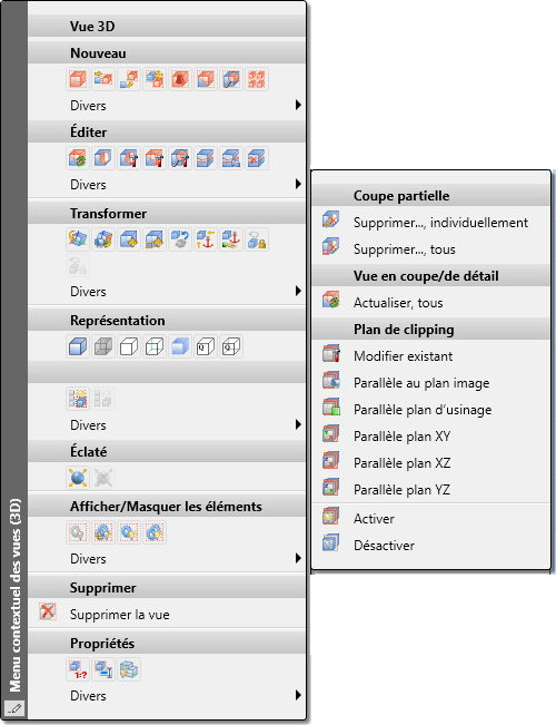 Vous souhaitez maintenant masquer sous le menu Modifier > Divers l'encart Plan de clipping et afficher les autres fonctions du menu uniquement sous forme de petite icône.