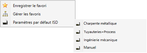 Il existe également des paramètres prédéfinis par ISD fournis dans HiCAD : les Préconfigurations ISD et Paramètres par défaut ISD. Vous les trouverez dans certaines fonctions, comme le repérage (positionnement) ou le configurateur d'escaliers. Si ces préconfigurations sont caractérisées par le symbole d'usine , cela signifie que ces paramètres sont verrouillés et ne peuvent être écrasés pas l'utilisateur.