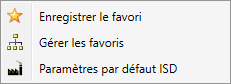Tous les paramètres de la fenêtre peuvent être sauvegardés comme favoris et réutilisés pour de nombreuses fonctions. La gestion de ces favoris s'opère grâce à des fonctionnalités, avec lesquelles vous pouvez renommer, supprimer, importer, exporter et regrouper les favoris dans un dossier.