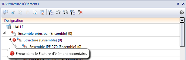 Si ces cases sont cochées, les éléments dont le Feature et/ou les contraintes HCM sont erronés dans la structure d'élément seront signalé en conséquence, par exemple :