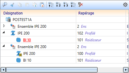 Dans la barre d'outils de la fenêtre de l'ICN, plusieurs fonctions sont utiles à la structure d'élément :