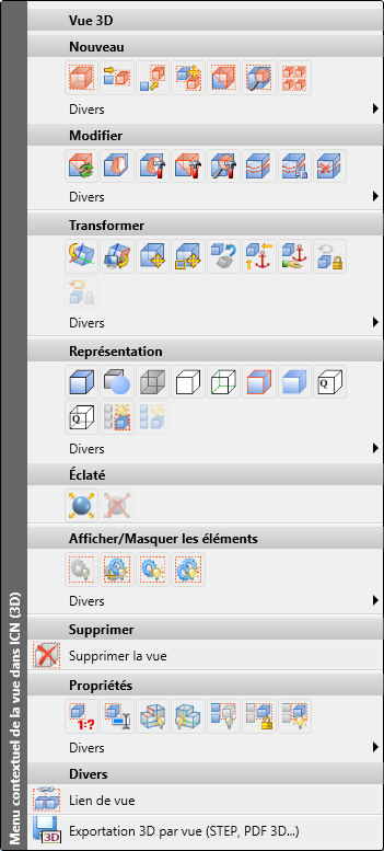 Pour modifier les zones de modélisation/de feuille ou les vues, vous pouvez également recourir aux fonctions du menu contextuel correspondant. Pour cela, cliquez avec le bouton droit de la souris sur l'entrée de ICN en question.