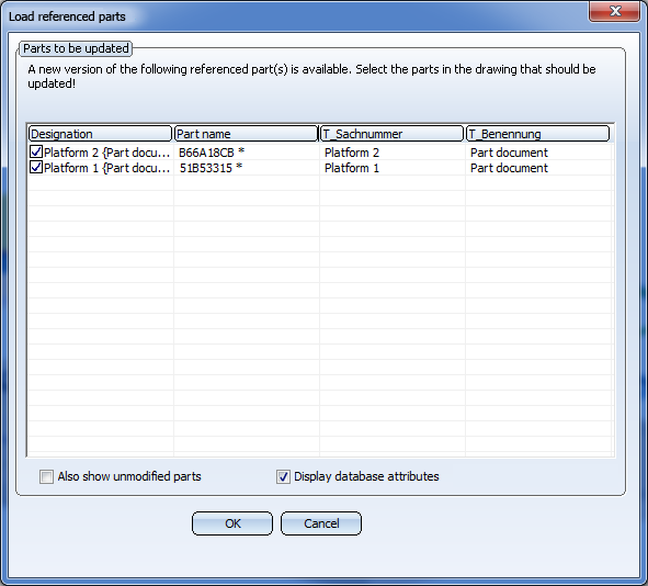 When you then load the original model drawing, the Load referenced parts dialogue window will be shown.