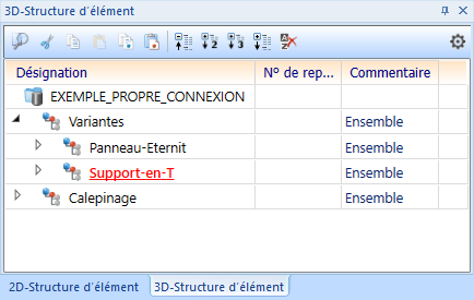 Pour la sous-structure également, une information de connexion doit avoir lieu. Toutefois, aucun usinage n'est prévu ici pour l'instant. Ici aussi, veillez à traiter l'élément dans l'ensemble Variantes et non les éléments créés par la sous-structure.
