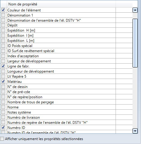 Vous pouvez sélectionner et désélectionner toutes les propriétés en une seule fois grâce aux deux boutons situés au-dessus du tableau. Le champ de recherche vous permet également de retrouver plus facilement certaines propriétés.
