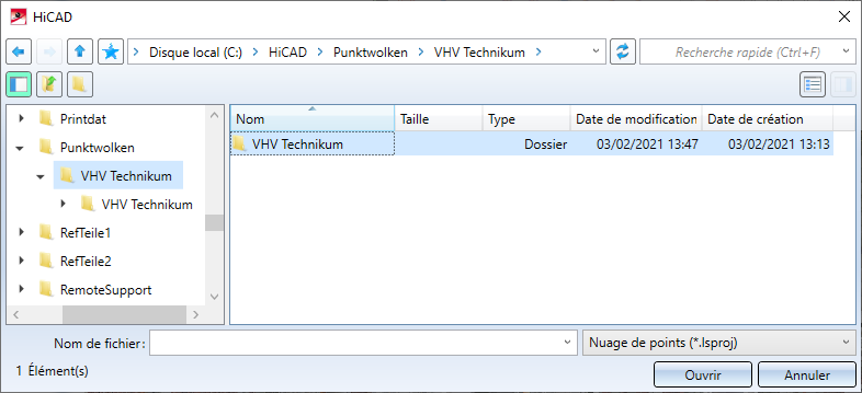 Dans la fenêtre de dialogue, sélectionnez le nouveau nuage de points ou le nouveau chemin d’accès du nuage de points, puis cliquez sur Ouvrir.