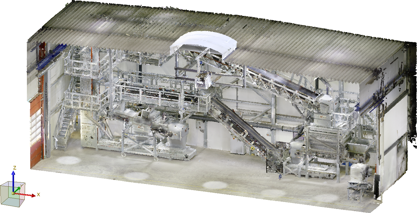 Exemple d’un nuage de points importé dans HiCAD et du système de coordonnées d’élément VHV Anlagenbau GmbH, Hörstel)