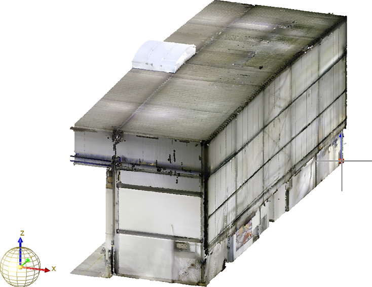 Le cas échéant, il peut être nécessaire d’aligner le nuage de points sur le système de coordonnées universel afin de bénéficier d’une meilleure orientation. C'est notamment le cas lorsque le nuage de points sert de base à la création de la modélisation CAO correspondante. Pour ce faire, vous pouvez utiliser les fonctions de transformation d’HiCAD pour pivoter et déplacer le nuage de points autant de fois que vous le souhaitez.