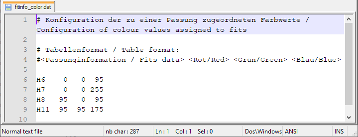 In the sys directory of your HiCAD installation you will find the configuration file fitinfo_color.dat, where the assigning of RGB colour values to fits data is specified.